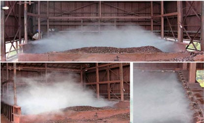 配合浦塔( 虎扑体育 )堆场深层抑制剂 SS-300 使用:对于物料内部进行深层抑制,物料堆放前均匀喷洒、混拌;避免了需铲、装、运产生的二次扬尘。可根据浓度调节,抑尘时间可达半年。
